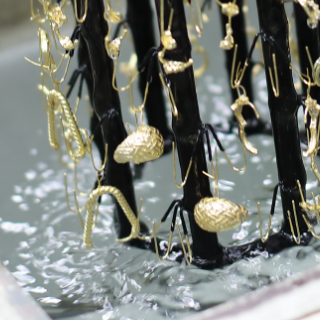 純金のため、装身具には適当ではありませんが、仏像や干支、置物のような立体物に金、銀を厚く析出させることが可能です。